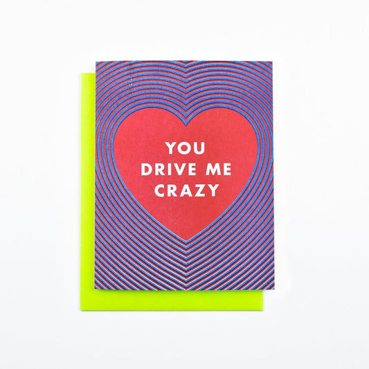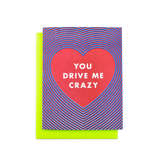 Radiating Heart "You Drive Me Crazy" - Risograph Greeting Card
