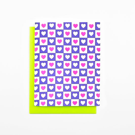 Checkers - Hearts - Risograph Greeting Card