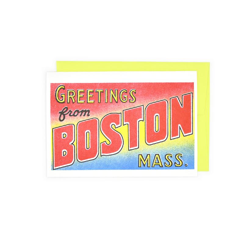 A new colorful and modern take on the 'Greetings From' series printed on Riso, featuring Boston, MA.