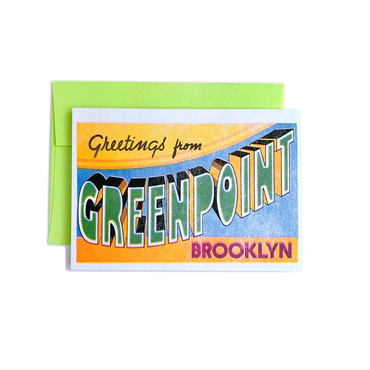 A new colorful and modern take on the 'Greetings From' series printed on Riso, featuring Greenpoint, Brooklyn!