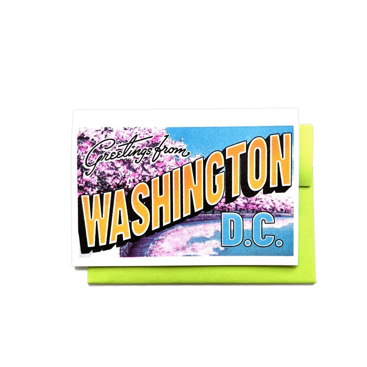 A new colorful and modern take on the 'Greetings From' series printed on Riso, featuring the nation's capitol - Washington, DC!