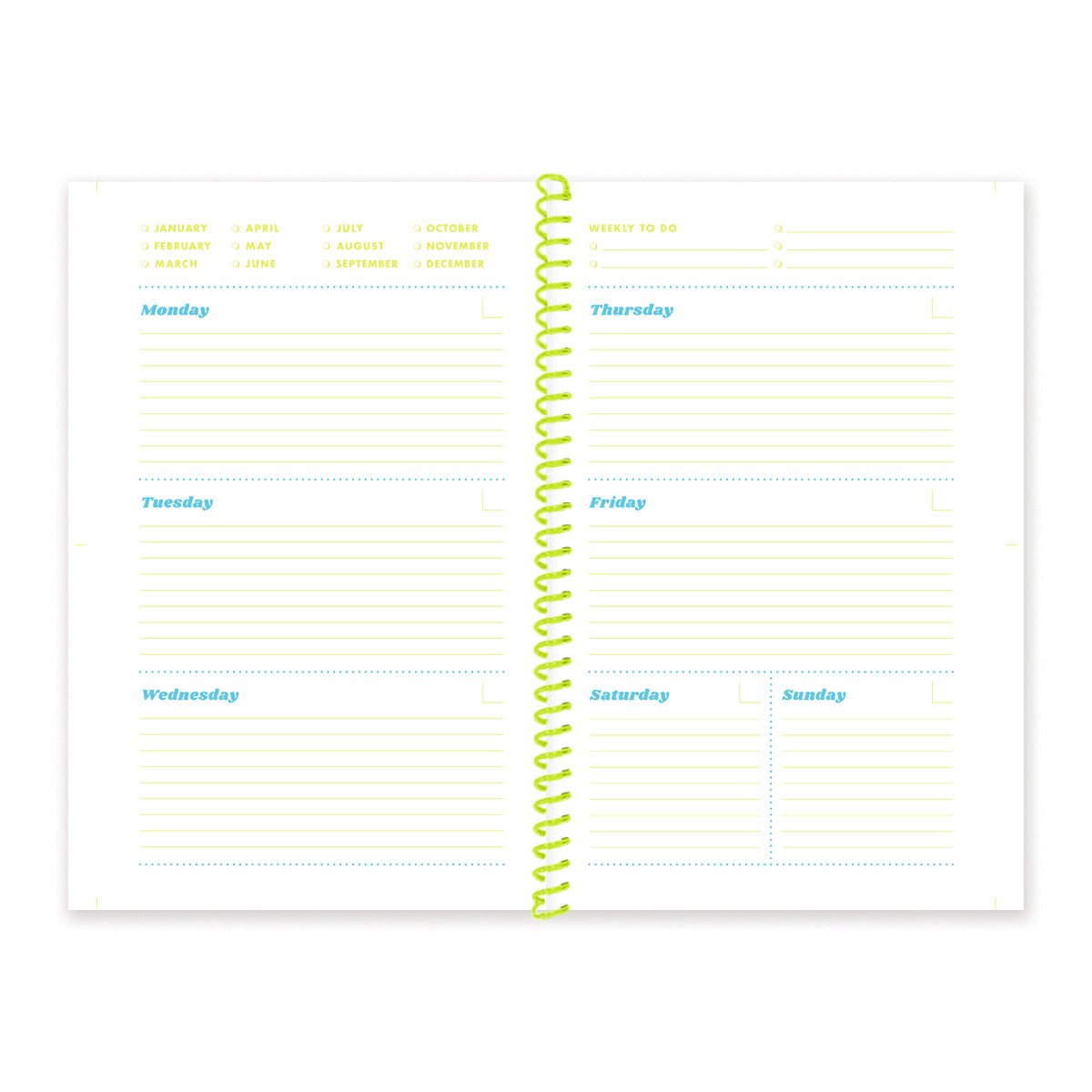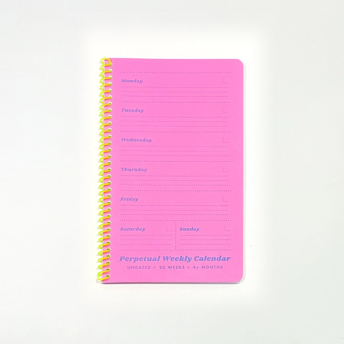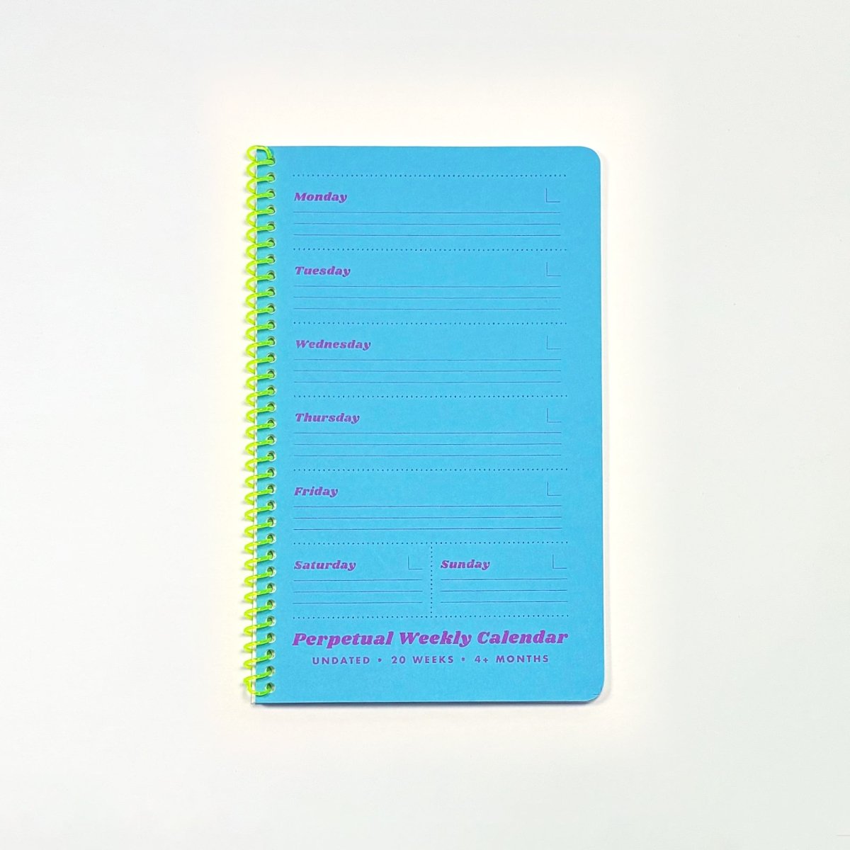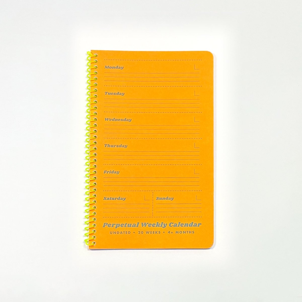 A very simple undated calendar to take on the go. Each spread features a weekly layout. Will last 20 weeks or 4+ months. Includes a "year at a glance" on the back page. Start at any month or date - it never expires!