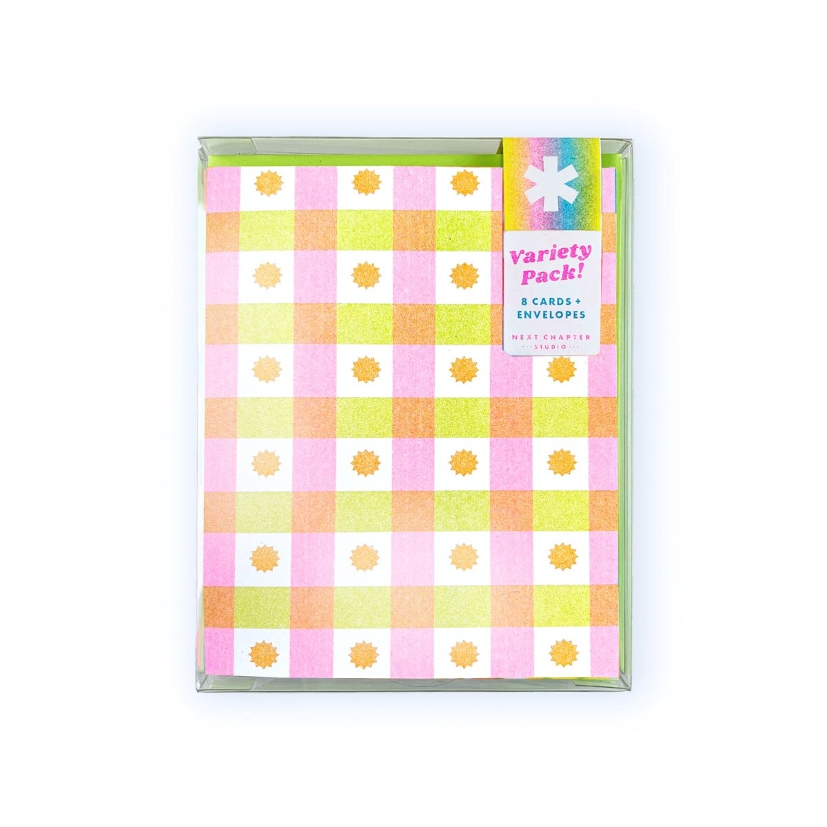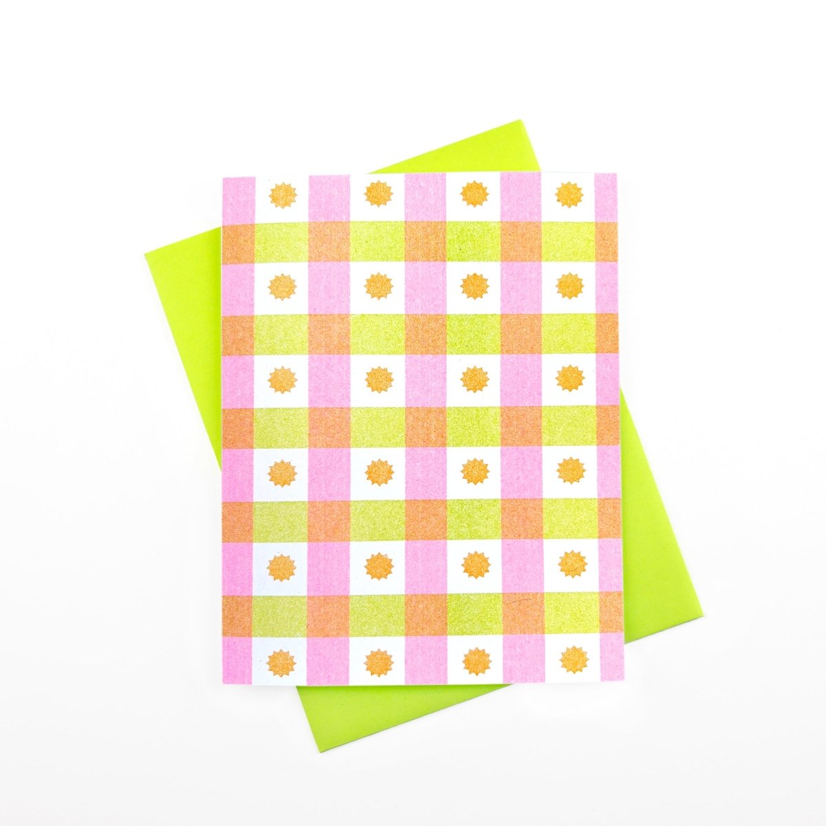 A fun and summery card pack, with bright artwork and no inscription. Imagine a picnic with our blanket, watermelon, ants in the grass, and daisy patterns. Also available as individual cards.