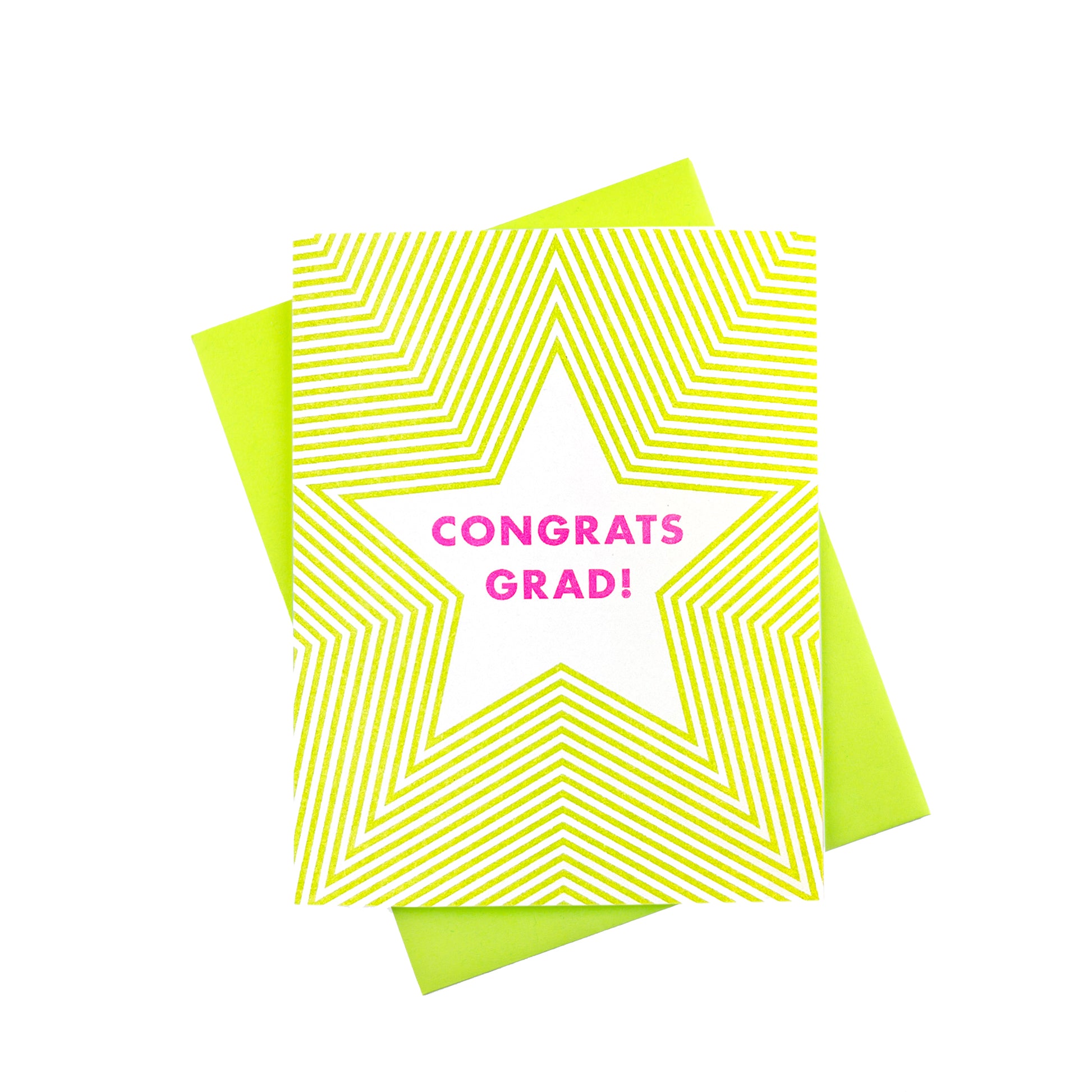 Radiating Superstar "Congrats Grad!" Risograph Greeting Card