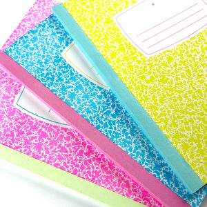 Brand new and totally unique—a classic notebook look, now in fluorescent Riso colors! Available in lime, pink, aqua, and as a set of 3.