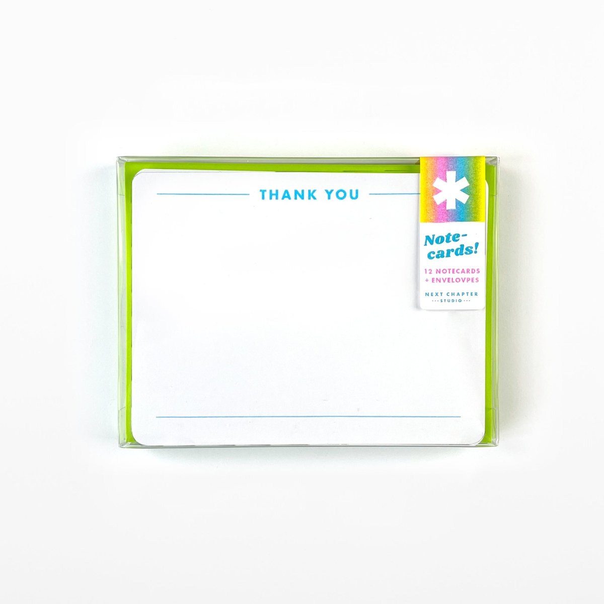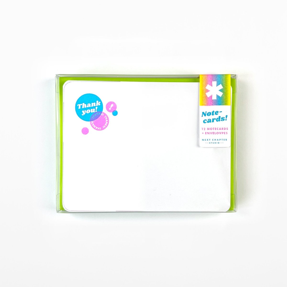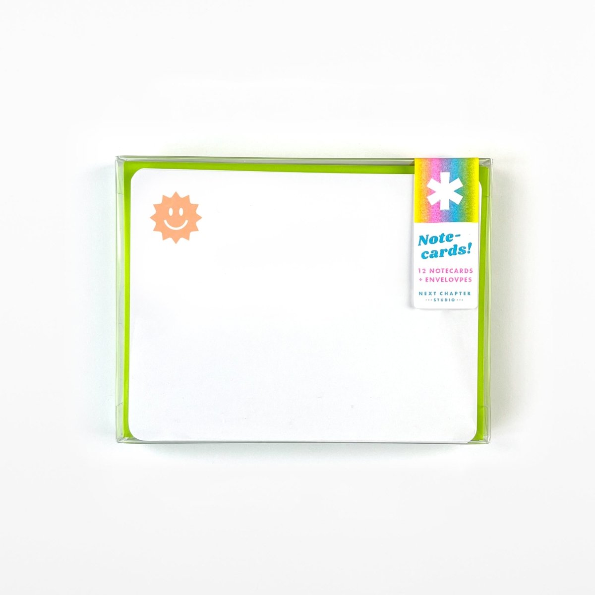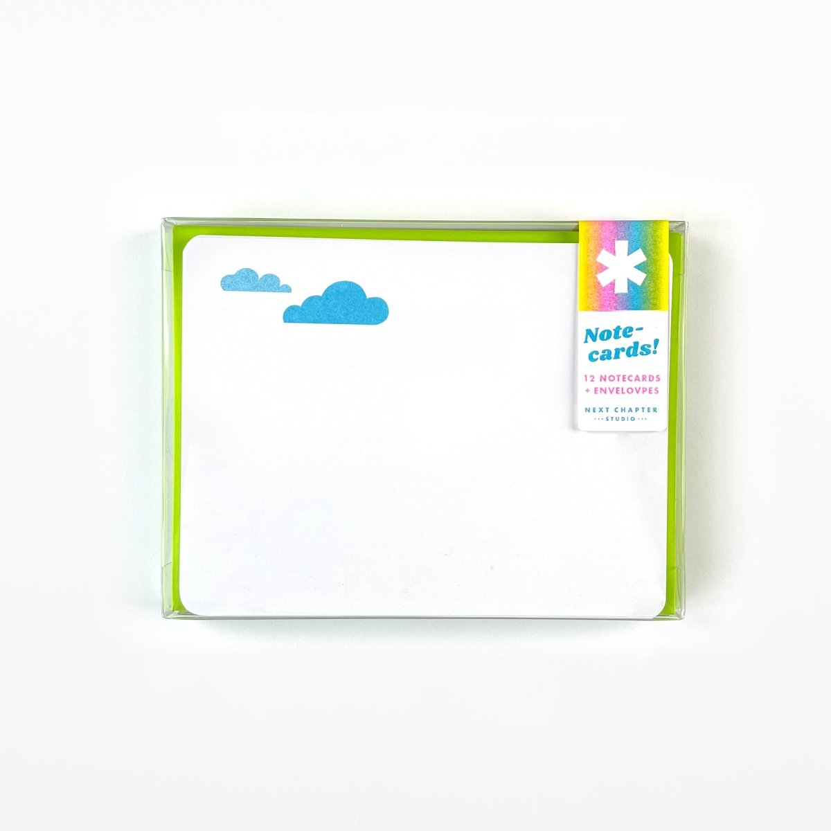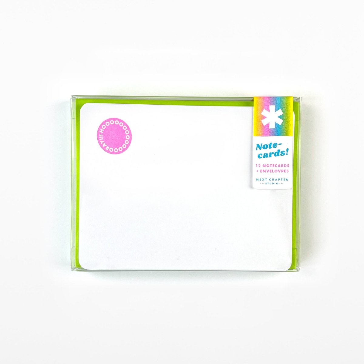 One design per set. Includes 12 envelopes. A2 sized, 100# cover stock, with rounded corners. Riso printed with vegetable-based inks. Packaged in semi rigid clear box with back info card.